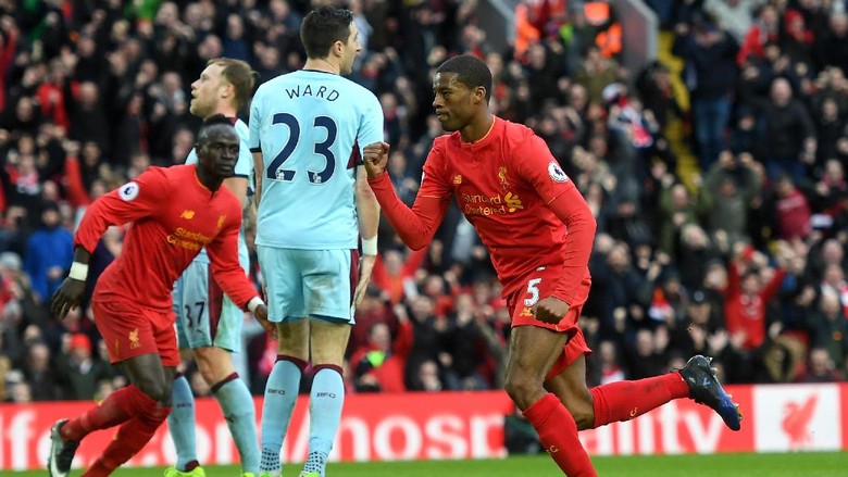 Liverpool terus kesulitan membongkar pertahanan Burnley. Sepakan Wijnaldum menerima umpan Milner dari situasi bola mati masih melambung jauh.